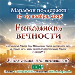 Милости просим на наш ежегодный Марафон, где вы можете послужить Господу и нам исполнением Его Святого Слова! Чтобы стать участником, во время Марафона зайдите на нашу домашнюю страничку по адресу: www.bbnradio.org/wcm4/russian и нажмите на баннер Марафона поддержки, или сделайте своё пожертвование напрямую по этой ссылке. Вы также можете отправить голосовое или текстовое сообщение по следующему номеру: +1 (980) 428-9450.