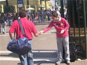 Ich beobachtete den Knaben ein paar Minuten und sah, dass er keinen vorbeiließ, ohne ihm eine Karte in die Hand zu drücken.
