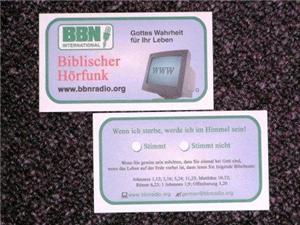 Auch Sie können von Gott gebraucht werden, um verlorene zu erretten, um die machtvolle Botschaft des Evangeliums zu verbreiten. Klicken sie hier, um unsere Empfehlungskarten zu bestellen.